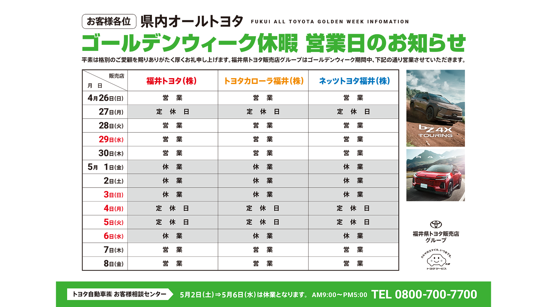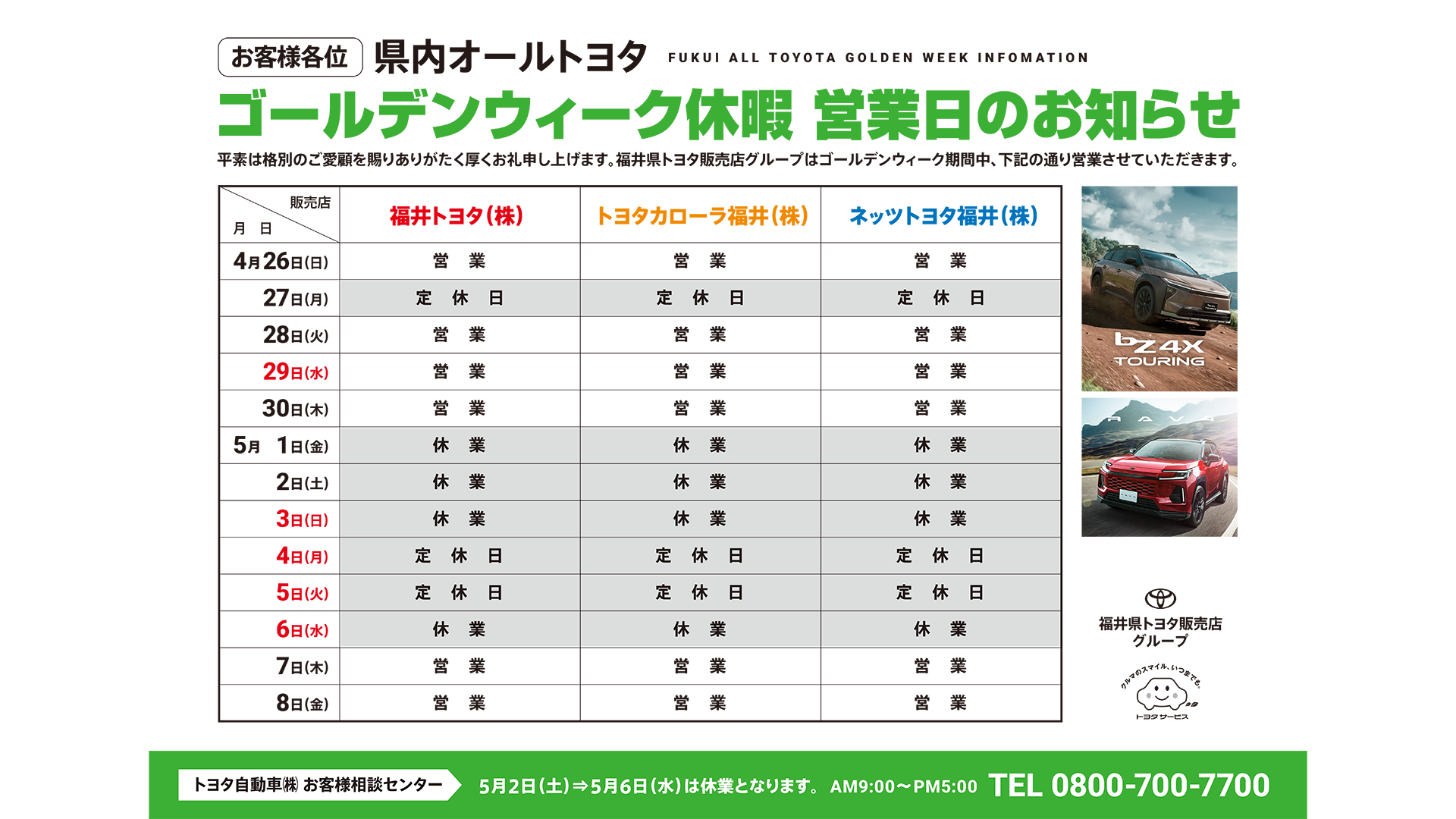 ゴールデンウィーク休暇のおしらせ